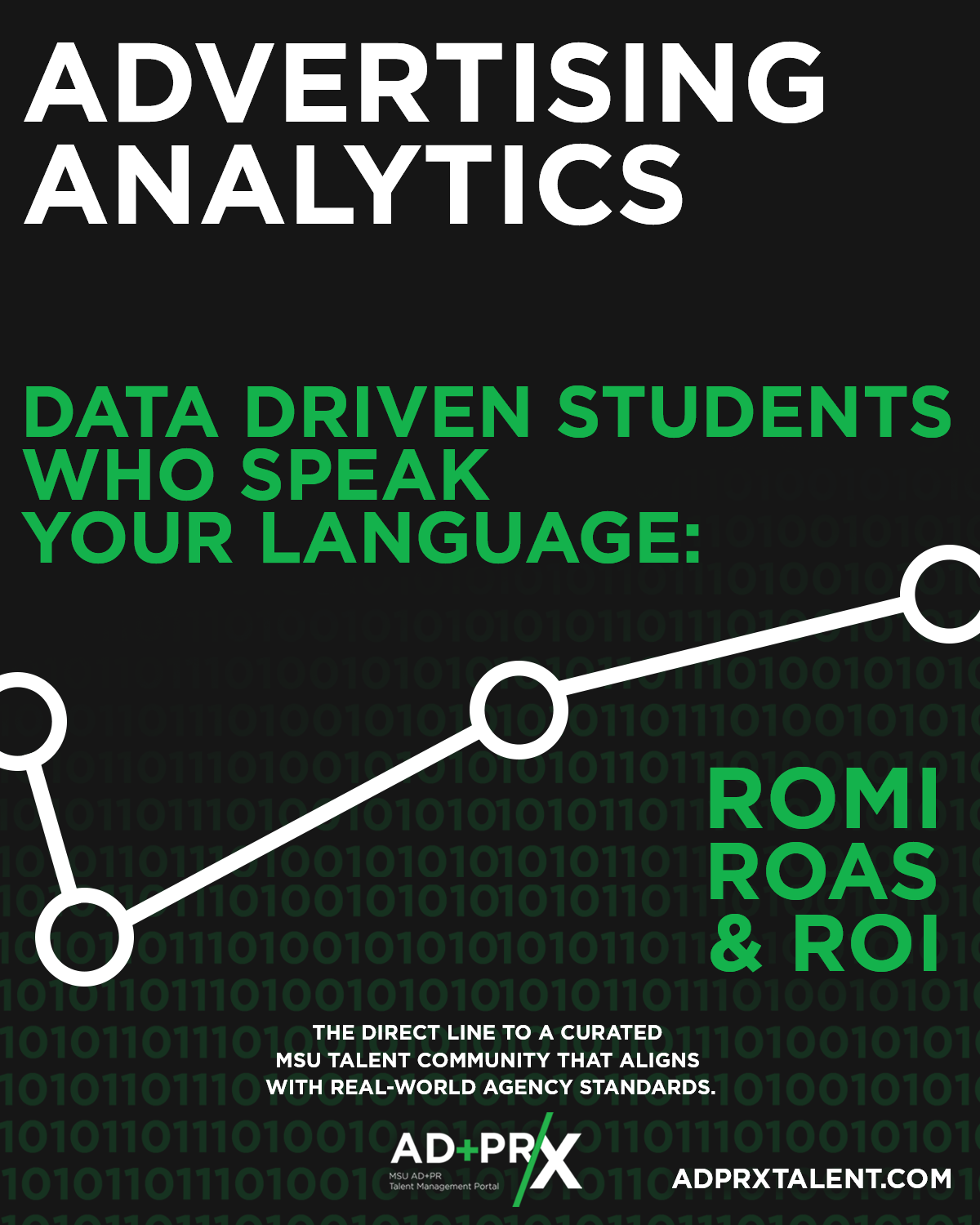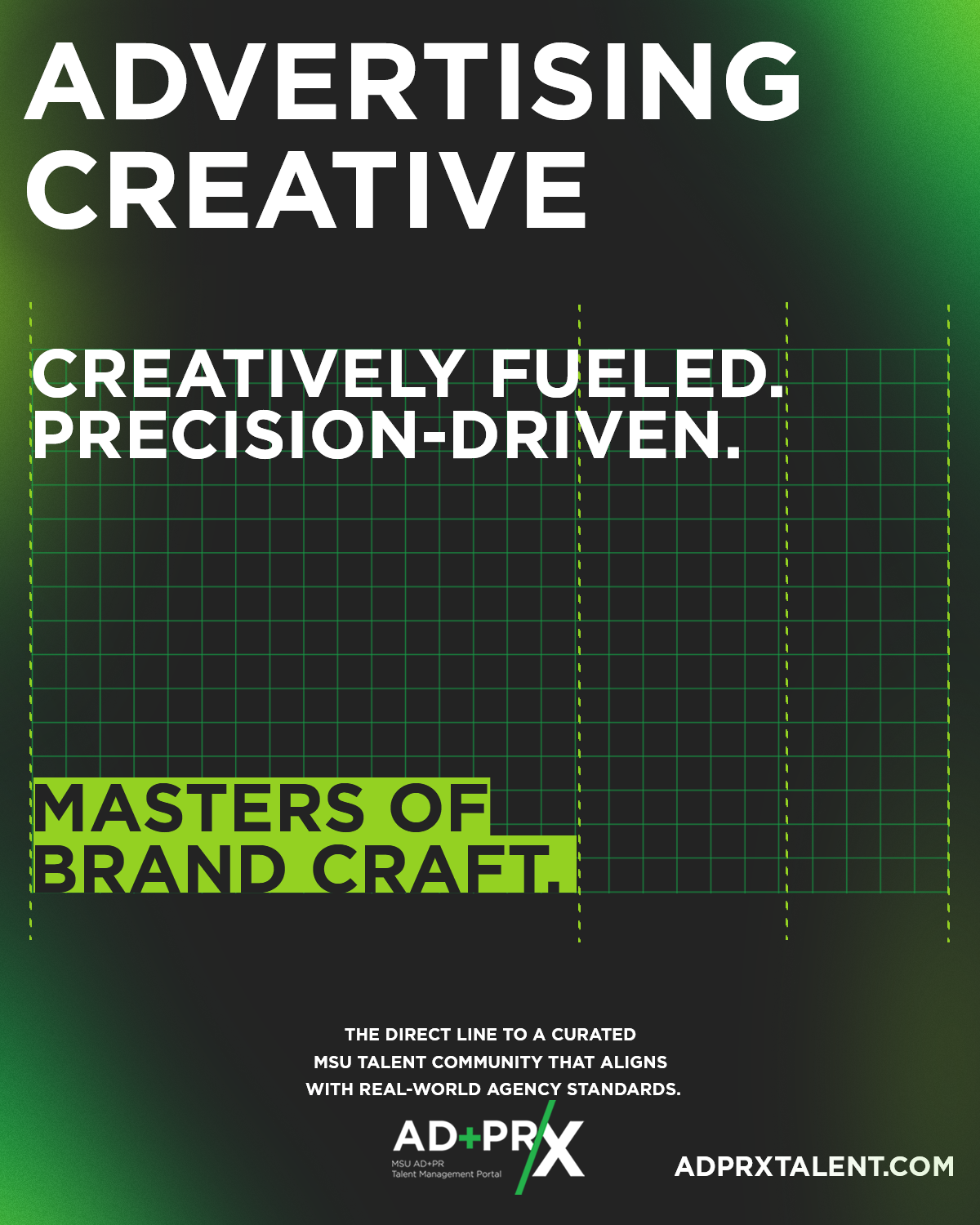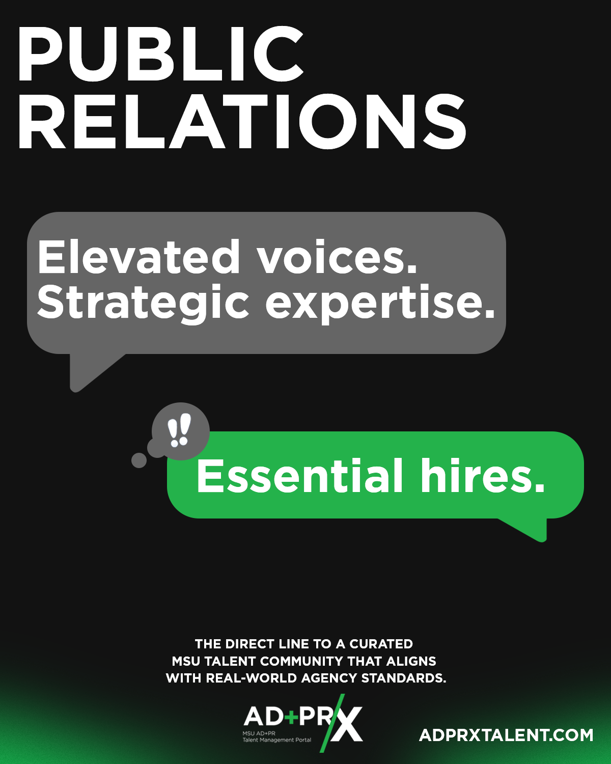 The AD+PR/X program allows advertising and public relations students to connect with employers and vice versa. As the Art Director for this client, I created a wide range of graphics, primarily used for social media and email communications. The thought process behind these graphics was to let the copy speak for itself, with visuals used to support the message. Nothing too flashy or trendy, just straightforward communication with consistent design elements.