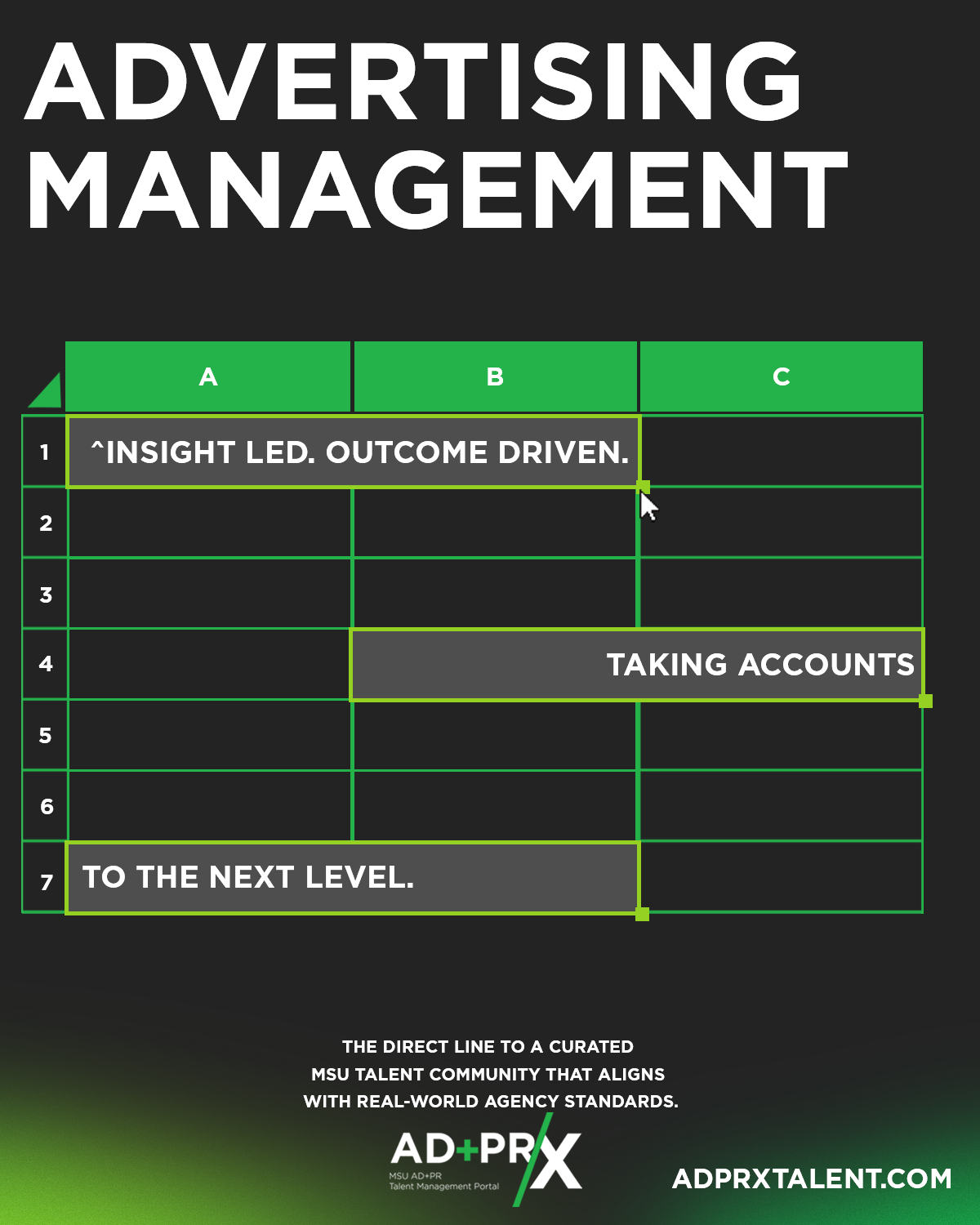 Graphics for MSU AP+PR/X Talent Management Portal made as an Art Director at 42pointSEVEN at MSU